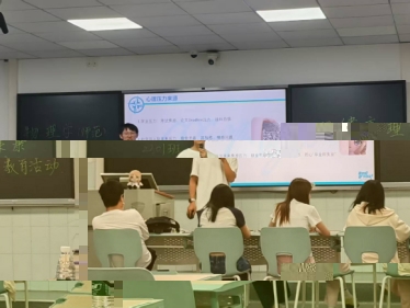 活動伊始,主持人郭斌通過簡要講解,向同學們介紹了團隊協作活動對身心健康的積極影響,同學們依次分享面對心理問題時的态度。在理論講解環節,郭斌配合生動有趣的動畫演示,系統剖析了團隊協作活動對認知功能、情緒管理和社會适應能力的多維影響,他巧妙引入“盲行挑戰”“信任背摔”等經典團隊遊戲案例,通過情景模拟與互動問答,引導同學們展開熱烈讨論。