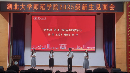 随後,副院長付應雄教授、趙映川教授,院黨委副書記喬荃依次上台為新生們介紹師範教育改革,本科生、研究生培養及學生工作相關内容。付應雄圍繞“當好老師的三個W”主題,向新生們分享了為什麼選擇師範專業、當好老師的意義是什麼以及如何做一名好老師,并詳細介紹了學院“1+8”高素質師範人才培養規格及師範專業培養方案。趙映川則從“博學之、審問之、慎思之、明辨之、笃行之”五個維度分享了她對大學學習的理解,并鼓勵新生們要在廣泛閱讀各類書籍的同時,保持好奇心和批判思維,培養獨立的見解與将知識轉化為應用的能力,認準目标、堅定前行。喬荃從“初識、攜手、築夢”三個層次為同學們介紹了學院基本情況、學生工作有關事項和學院重點打造的“未來教育家”培養工程。最後,她用藏有“安心求學”四個字的短詩“安全意識要樹牢,身心健康最重要,勤勉求知長本領,互幫互學存友誼。”寄托了對新生們的美好祝福。