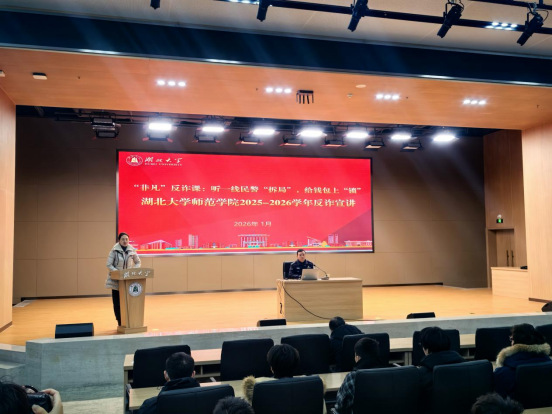 為進一步加強校園安全教育,切實增強學生防範電信網絡詐騙的意識和能力,共同營造安全穩定的校園環境,學院于1月7日下午在雙創大樓三樓報告廳舉辦“常見電信詐騙案例學習”專題講座。本次講座特邀武漢市公安局武昌區分局打擊網絡犯罪中心(反詐中心)民警劉非凡擔任主講嘉賓。武漢市公安局武昌區分局餘家頭派出所副所長袁巍、校安保部副部長柏峰出席活動,輔導員韓鵬振、麥菲娜、本科生和研究生班委及網格員代表參加學習,學院黨委副書記喬荃主持活動。